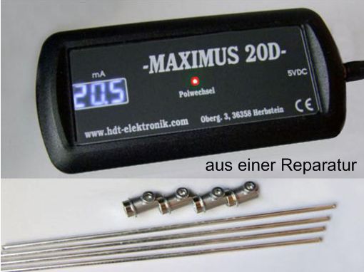 ausverkauft ist. 4 Silberelektroden 140 mm, mit Polaritätswechsel , Elektrodenstrom 1 x 20 mA.
